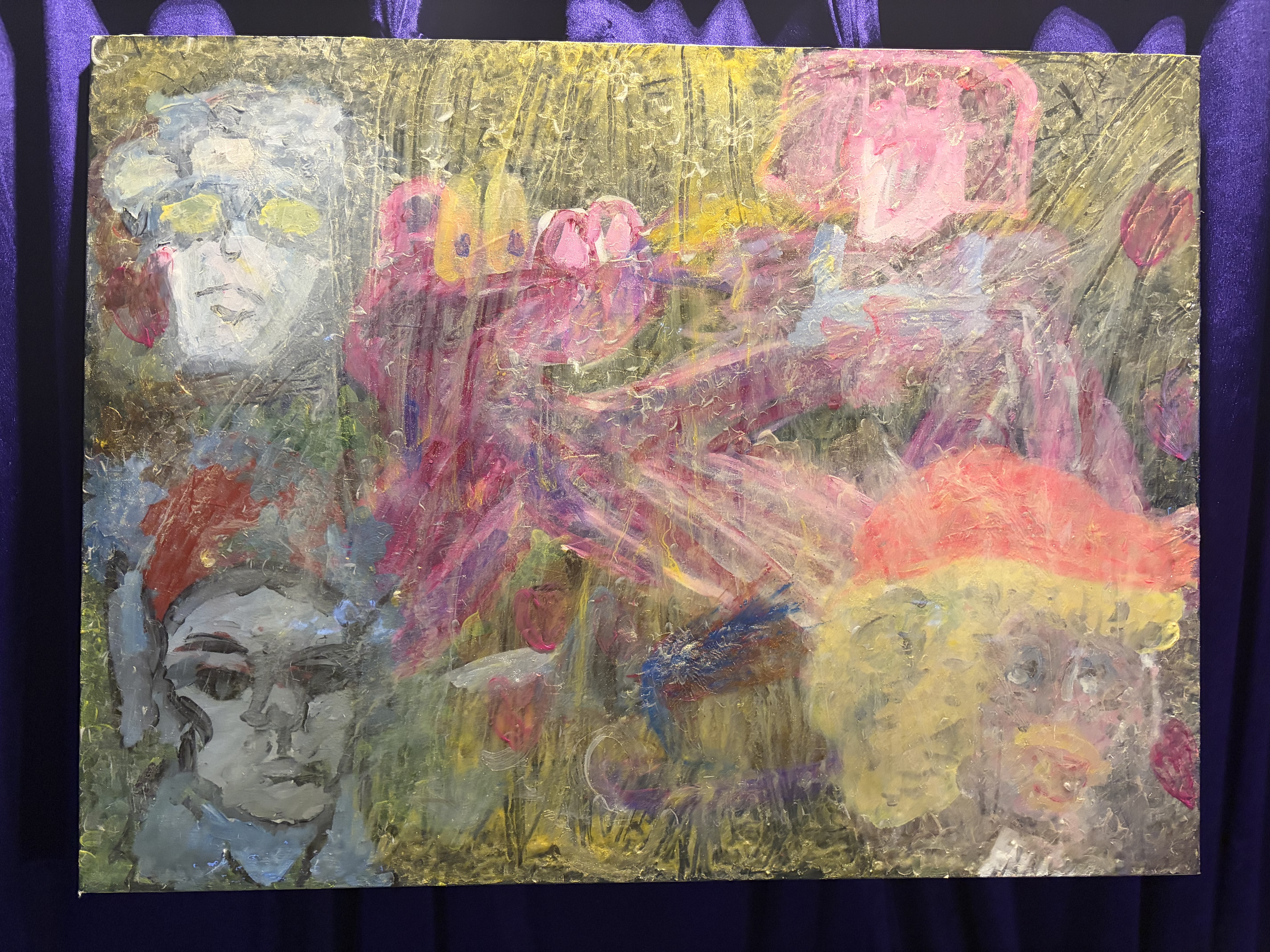 Are You Carl? Painting Acrylic, glitter, oil, epoxy resin. 30”x42” Artist: Ian Mari Micabalo Carl Jung abstract of thoughts and how they arrive in our reality shaped before us by moments in which we are in. Thought leader Carl Jung is who this maybe is in the mind of?